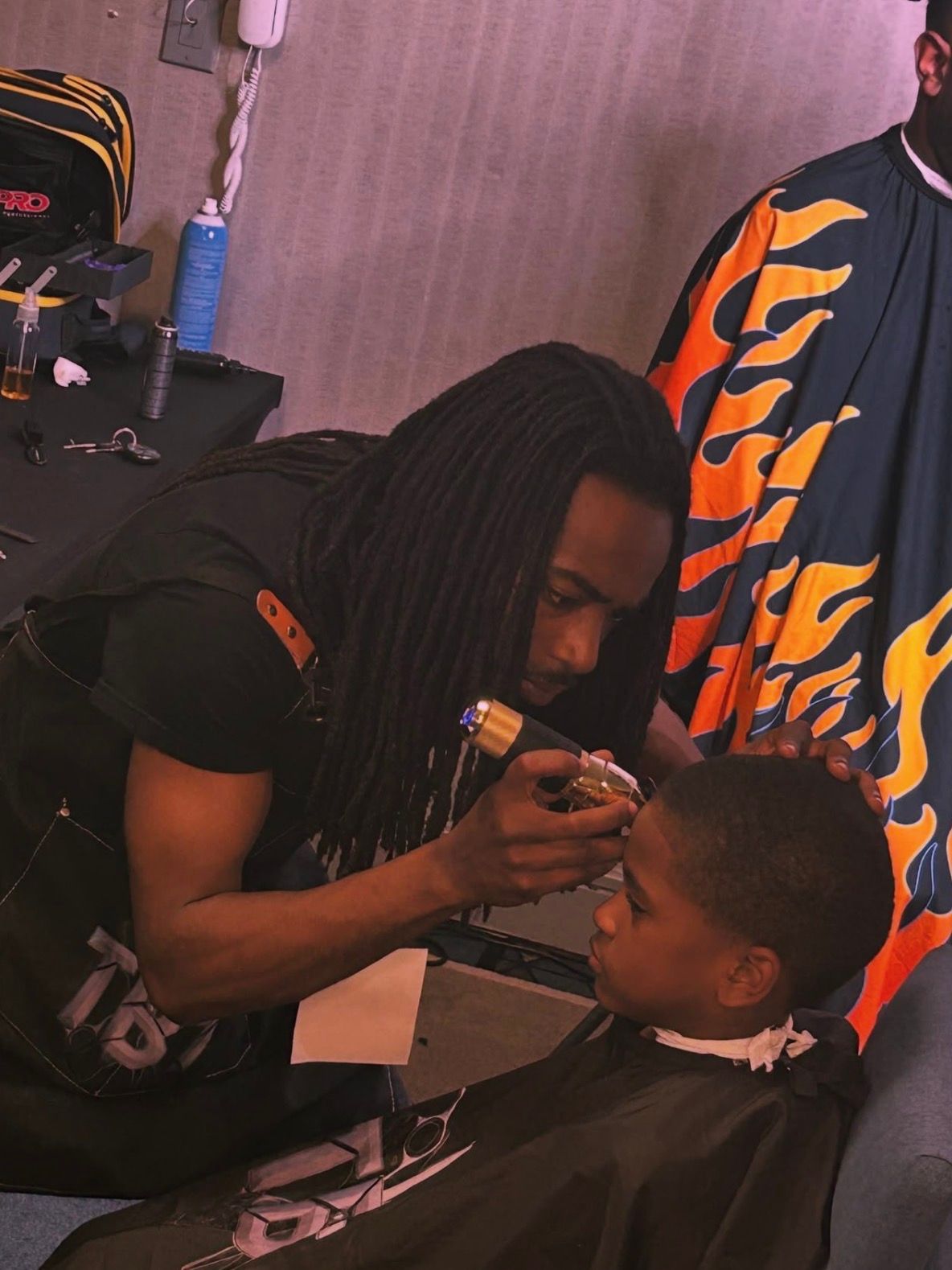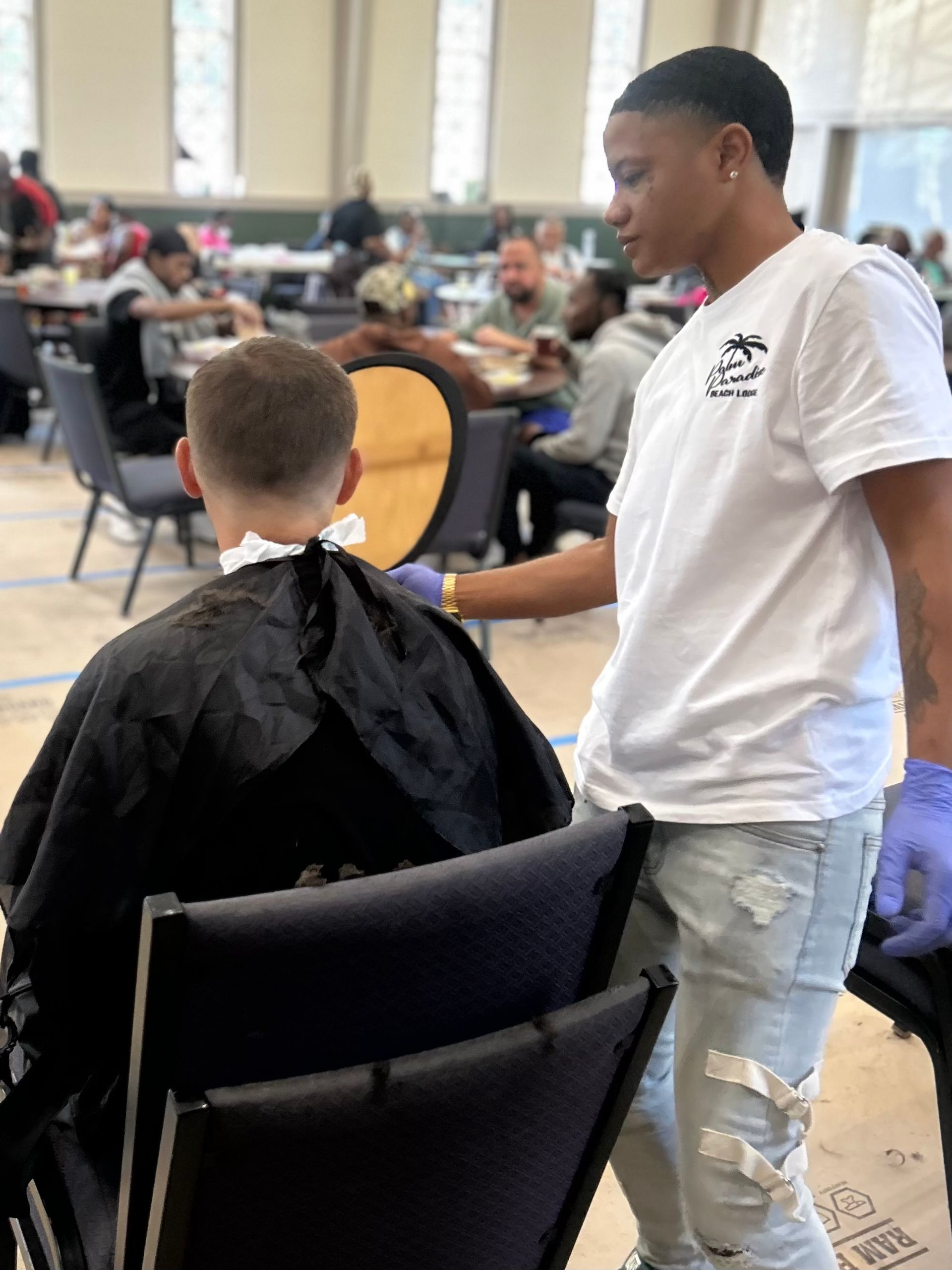 Barber college students in action